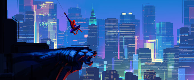 By the time I joined the crew on this amazing film at Sony, most of the design and layout work had already been completed. I was brought in primarily to help out with sequence color & lighting, and to help visualize the look of Kingpin's flashback sequence. I also got to paint one of the posters! Please know that I had layouts for all the pieces here...some of which I've been able to include.